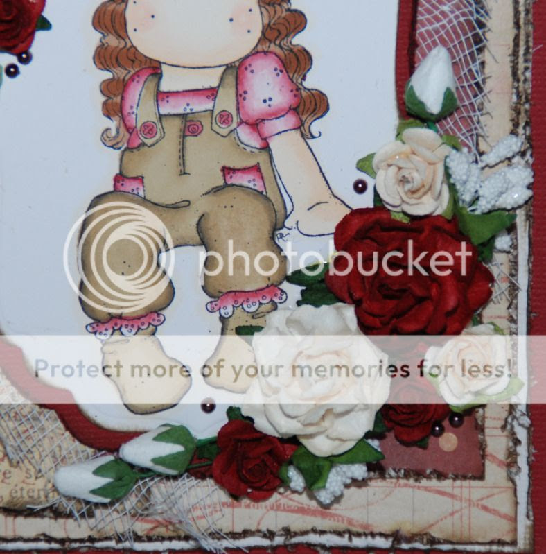 Beautiful card, i love the distressed edges, I have just tried that myself for the first time and I really like the look of it. Great to see someone who knows how to colour Tilda so well too. Thanks for joining us over at I ♥ ProMarkers Challenge Blog this week, good luck and hope to see you again real soon,